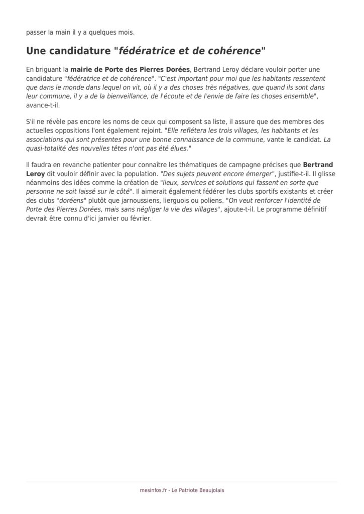 Election du nouveau maire en conseil le 4 décembre Nous essaierons que les 3 mois qui nous séparent de l’élection générale soient à la fois inscrits dans la continuité mais également Voir l'article >